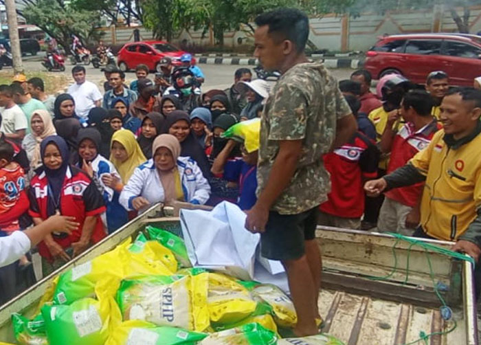 Bantuan tersebut diberikan kepada 40 buruh, 10 sopir angkutan kota, ojek pangkalan, serta 35 masyarakat umum.