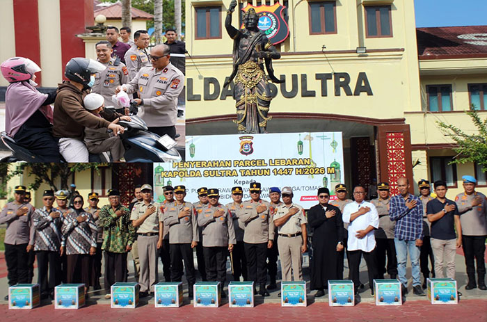 Kendari – Kapolda Sulawesi Tenggara (Sultra) Irjen Pol Didik Agung Widjanarko memimpin langsung penyerahan bingkisan Lebaran secara simbolis kepada berbagai unsur masyarakat di Lapangan Apel Mapolda Sultra, Selasa (10/3/2026).