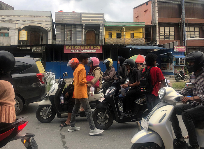 Dalam pembagian takjil tadi terlihat belasan mahasiswa membagikan menu buka puasa kepada masyarakat khususnya pengguna kendaraan roda dua.