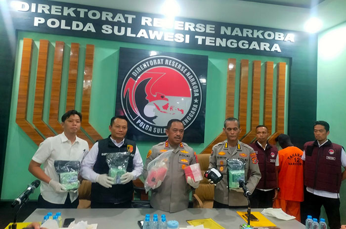 KENDARI – Kepolisian Daerah (Polda) Sulawesi Tenggara (Sultra) kembali menunjukkan komitmennya dalam memberantas peredaran narkotika. Hal ini ditandai dengan pengungkapan kasus narkoba jenis sabu-sabu jaringan internasional seberat 6,5 kilogram (Kg).