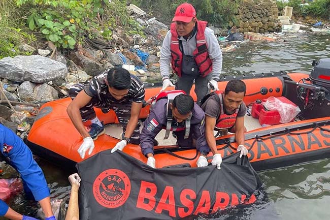 KENDARI – Tim SAR Gabungan mengevakuasi jenazah pria yang melompat ke laut dari Jembatan Teluk Kendari, Kota Kendari, Provinsi Sulawesi Tenggara (Sultra).