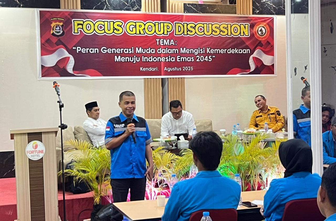 KENDARI, Cerminsultra.com – Puluhan mahasiswa dari berbagai perguruan tinggi di Kota Kendari mengikuti kegiatan Focus Group Discussion (FGD) dengan tema “Peran Generasi Muda dalam Mengisi Kemerdekaan Menuju Indonesia Emas 2045” di Aula Hotel Fortune, Kamis (28/8/2025).