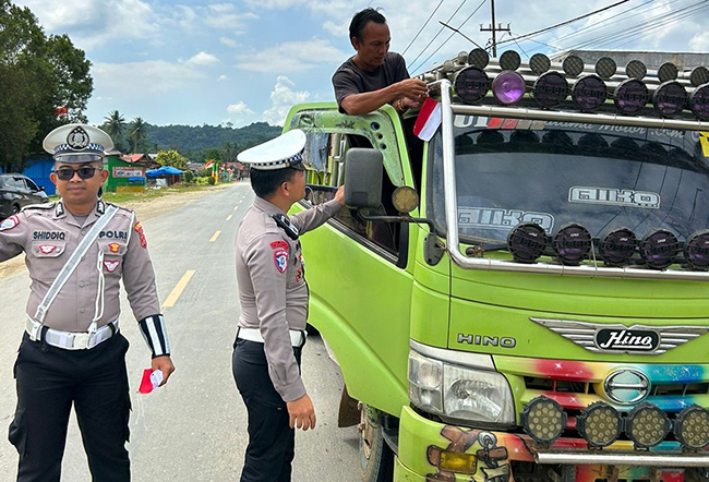 Sopir Mobil dan Pengendara di Sultra dapat Bendera Merah Putih Gratis