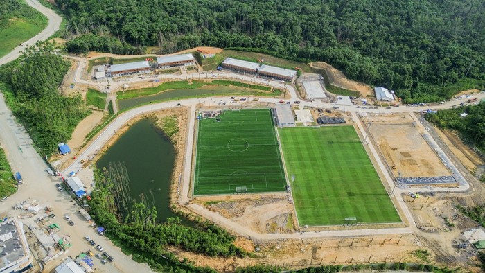Jakarta – Timnas Indonesia sudah bisa menggelar latihan di Pusat Pelatihan PSSI di Ibu Kota Nusantara (IKN). Tiga lapangan berstandar internasional selesai dibangun.