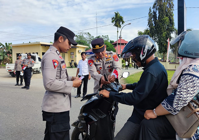Selain pemberian bendera merah putih, para petugas Lalu lintas juga memberikan imbauan ke warga agar selalu tertib berlalu lintas, dan mengutamakan keselamatan saat berkendara.